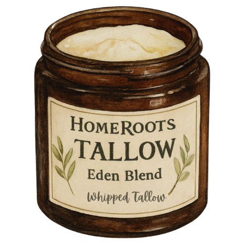 Beef tallow is incredibly gentle because it’s nearly identical to the natural oils your skin makes. It’s rich in saturated fats and fatty acids (like palmitic and stearic acid) that strengthen your barrier, lock in moisture, and calm irritation. Unlike many lotions filled with water and synthetic additives, tallow is pure, rich, and non-toxic — your skin reads it as nourishment, not an intruder.